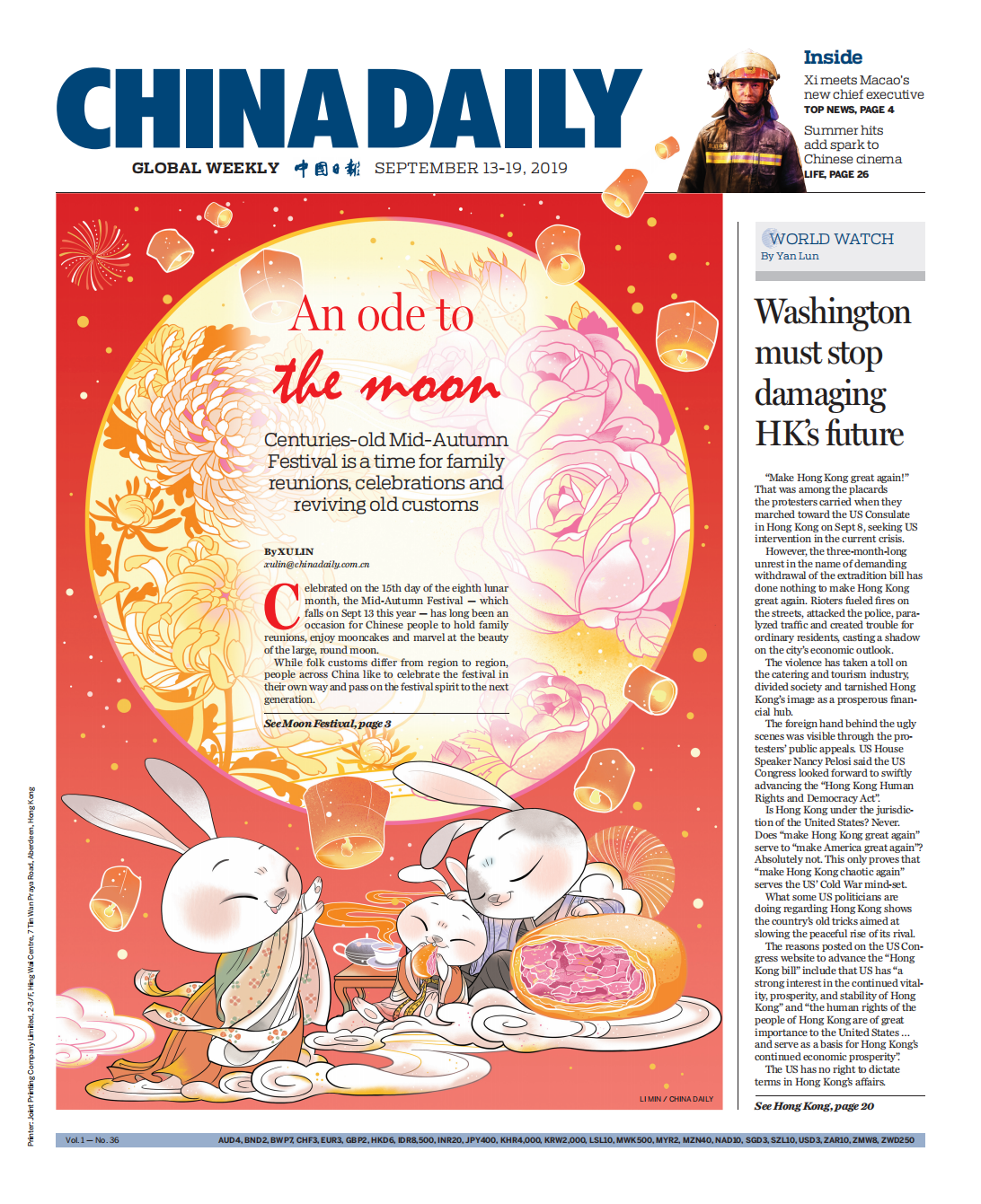 《中国日报国际版》周刊封面(2019年9月13日)