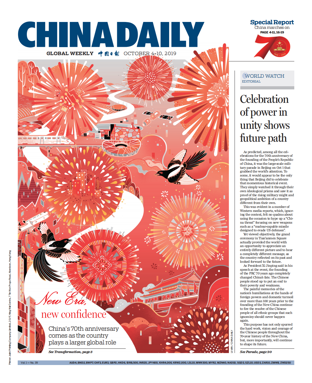 《中国日报国际版》周刊封面(2019年10月4日)